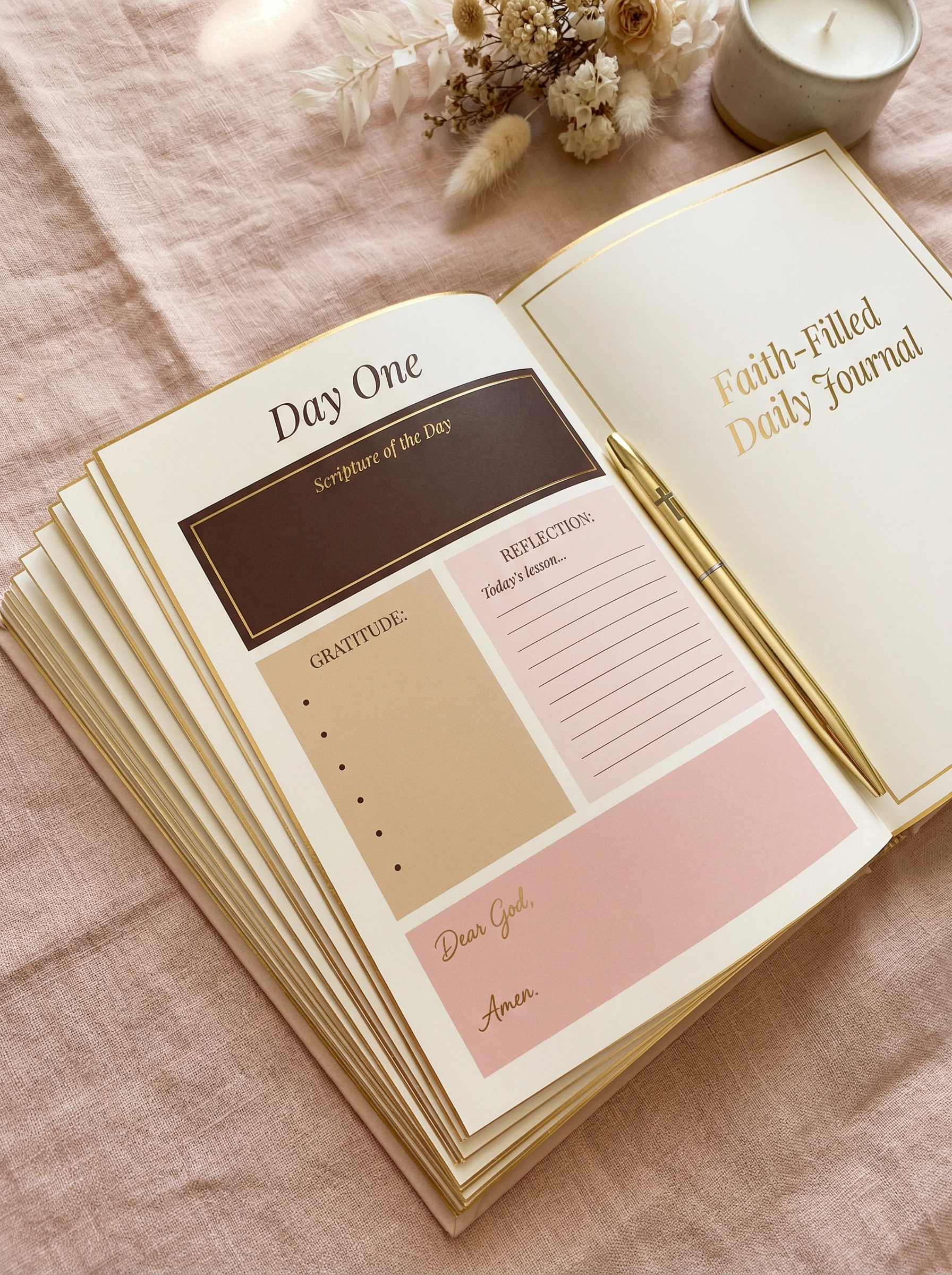 A beautifully designed daily journal to deepen your faith, document your journey, and grow closer to God every single day. In a world full of noise, this is your safe space to slow down, reflect, pray, and reconnect with God.