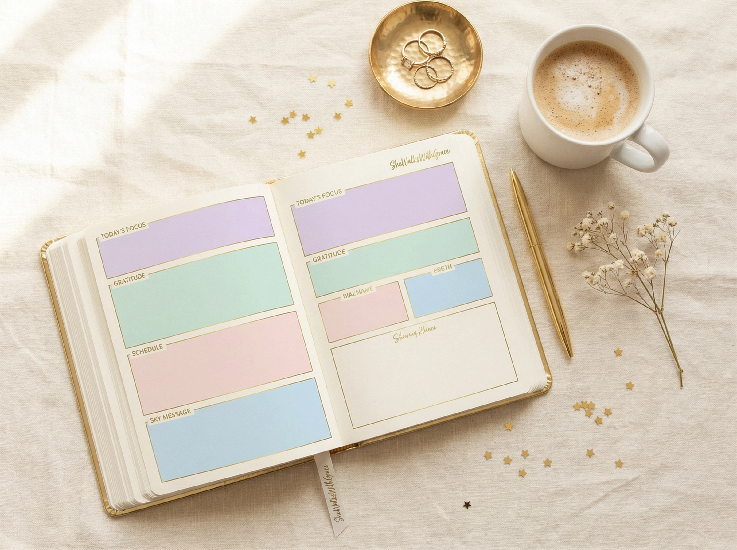 For the woman who is done with chaos and ready to live with intention. The Soft Life Planner helps you plan your weeks, track your habits, and build a life that feels as beautiful on the inside as it looks on the outside.