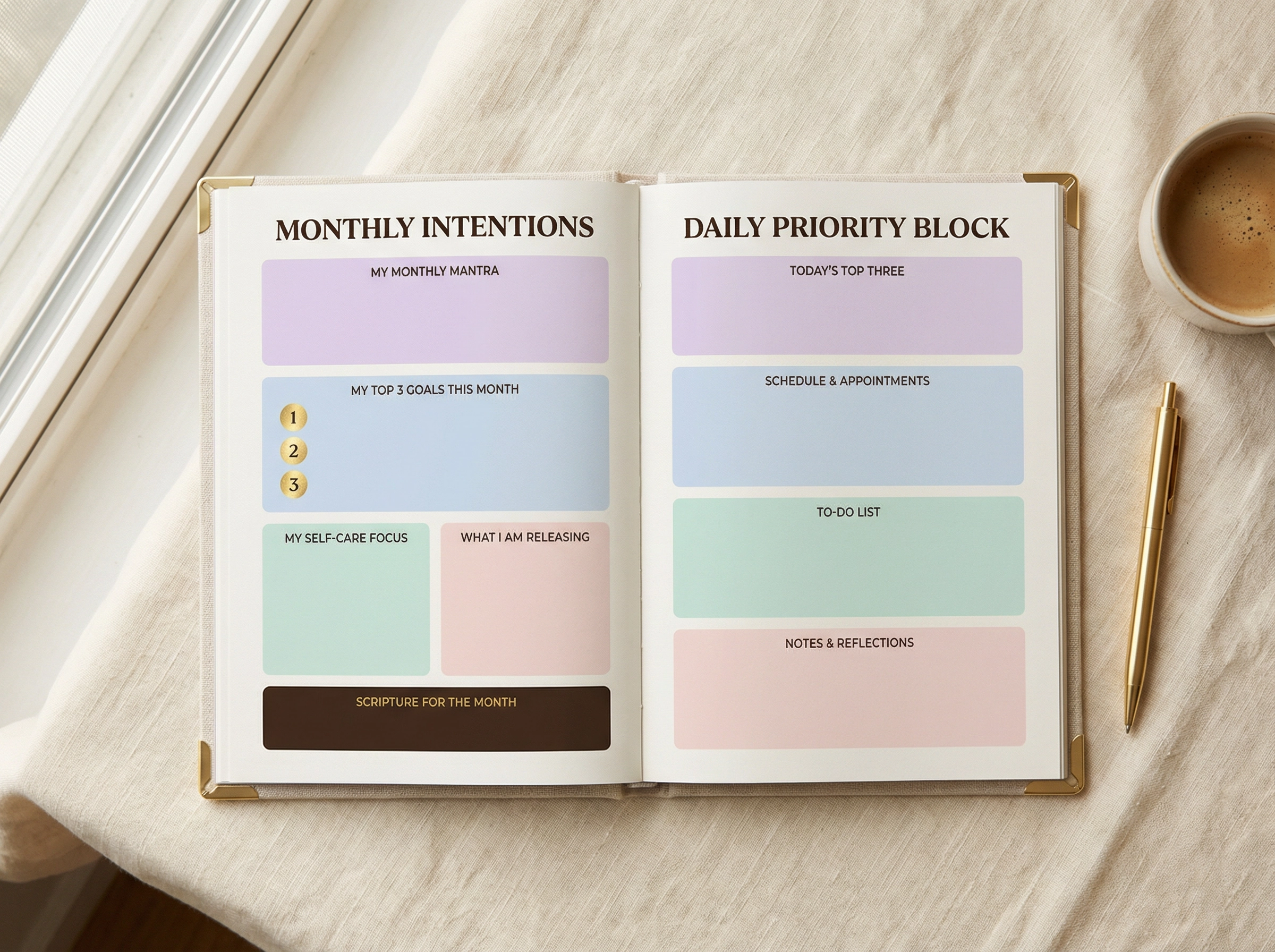 ✦Monthly Intention Pages — word of the month, top 3 goals